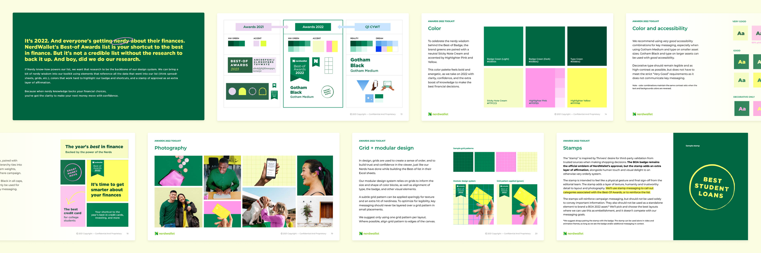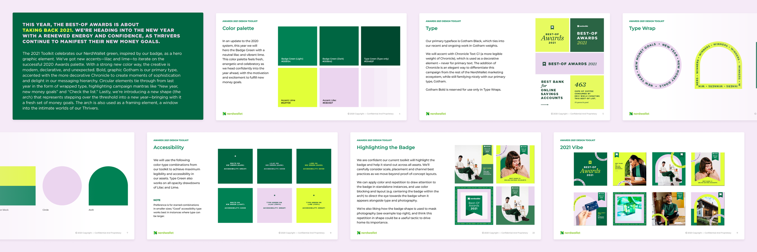 Best-Of Awards is NerdWallet’s annual celebration of the best in personal finance. I co-led the visual toolkit development and production design for the campaign, which influenced deliverables ranging from film to micro-sites, social, performance marketing, CRM, partnerships, and beyond.